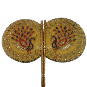 Home Beautiful Peacock Printed Yellow Pankhi For Laddu Gopal ( Length - 9.50 inch )