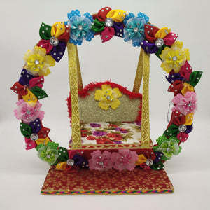 Designer Flower Decoration Wooden Jhula For Laddu Gopal