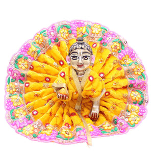 Home Flower border decorated velvet dress for kanha ji (Yellow)