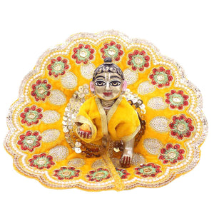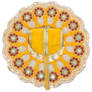 heavy flower decorated laddu gopal ji velvet dress ( yellow )