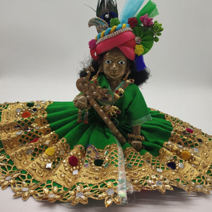 Kanha ji- Cotton Dress With Heavy Golden Lace And Stone-Blue-6