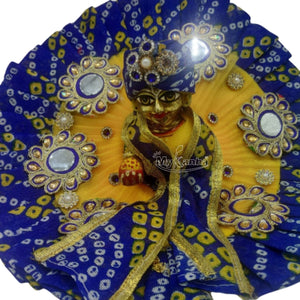 Bhandej Print Decorated Blue Dress For Laddu Gopal