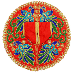 Home Peacock Feather Printed Red Dress For Thakur JI