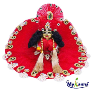 Introducing our exquisite Red Designer Dress for Ladoo Gopal, designed to add a touch of elegance and grandeur to your beloved deity. This beautiful dress is carefully crafted to fit Ladoo Gopal's size and shape, ensuring a perfect and comfortable fit.