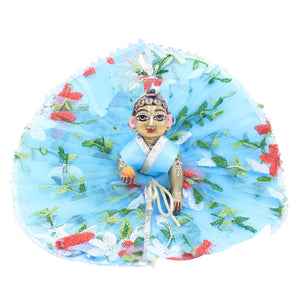 Sky blue flower design frill dress for Laddu Gopal Ji