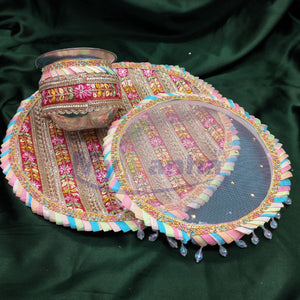 Heavy Leaf and flower design karwachauth thali for auspicious occasion.