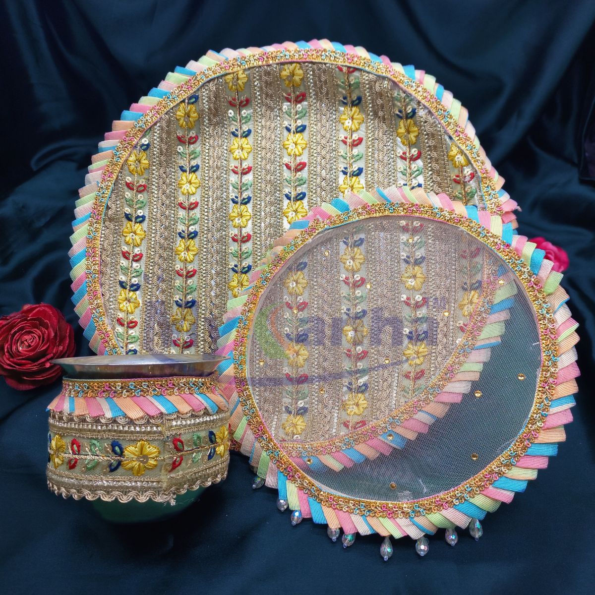 *12 inches decorated Thali with decorated Lota and Channi only