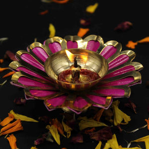 Beautiful Pink Yellow Diya For Home/Temple/Pooja Decoration ( 4 inch)