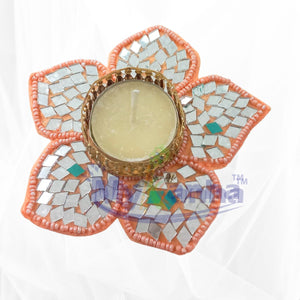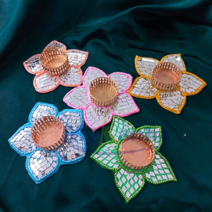 Mirror work T-light candle for festive decoration