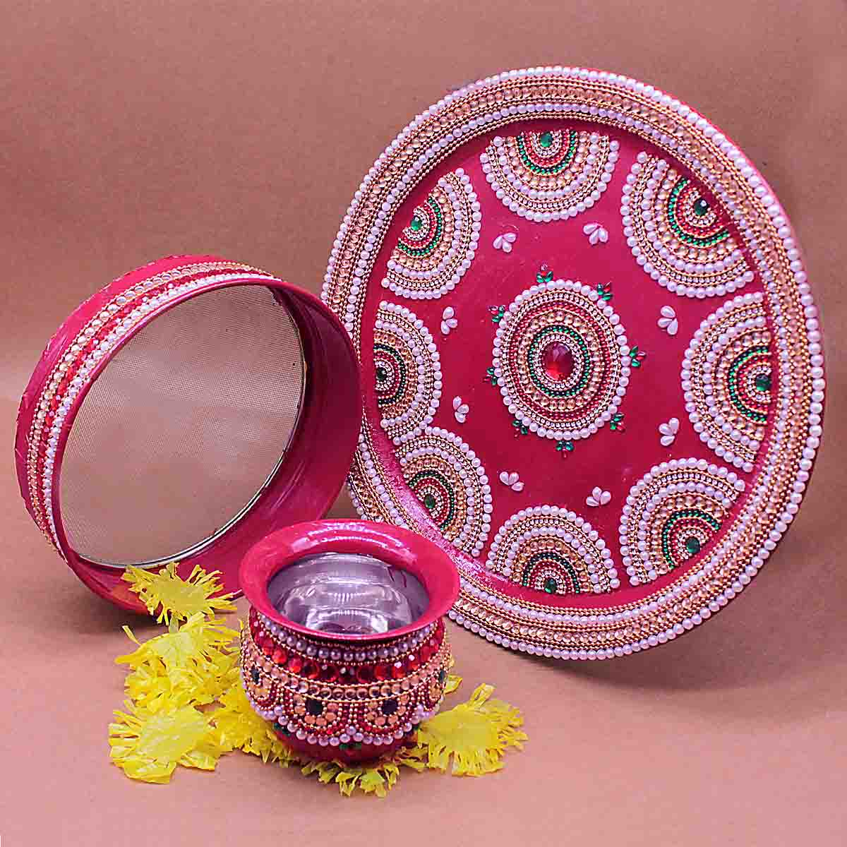 Handmade deisgner Karwachauth Thali set (Maroon)