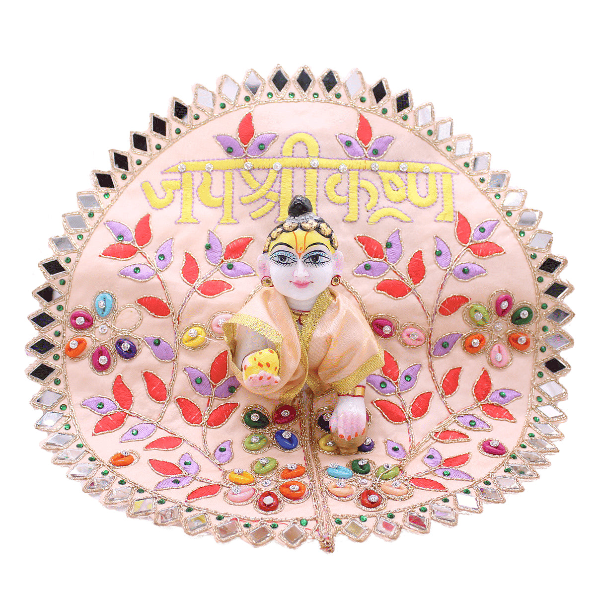 Jai Shree Krishna Printed designer peach dress for Kanha Ji