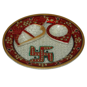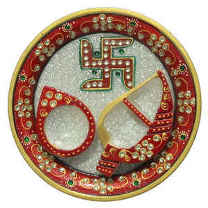 Marble Puja Thali For Home Decor (Diameter - 6 inch)