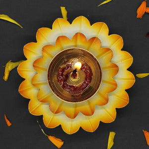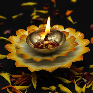 Flower Shape Yellow Diya For Home/Temple/Pooja Decoration ( 4 Inch )
