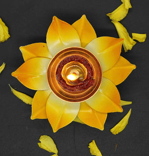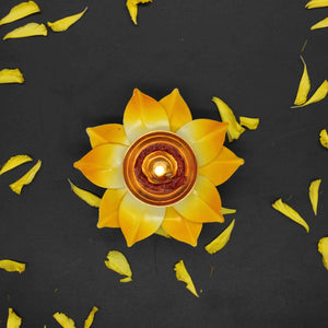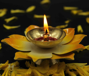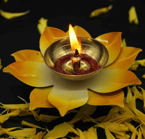 Yellow Lotus Shape Diya For Home/Temple/Pooja Decoration