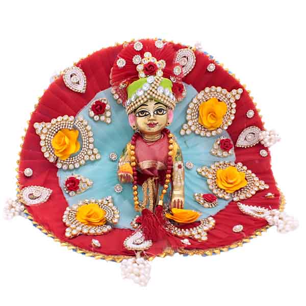 Red And Grey Decorated Heavy Dress For Laddu Gopal Ji (Full set)