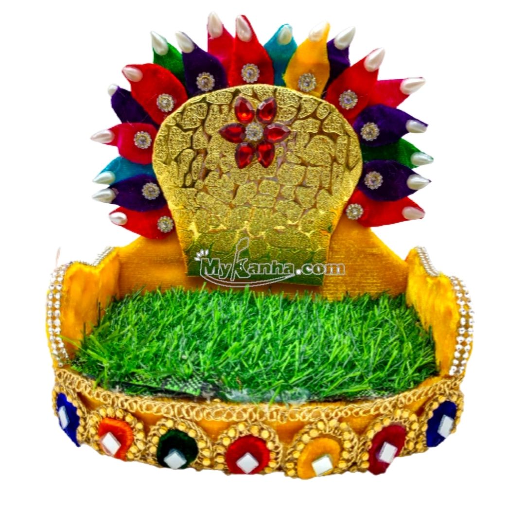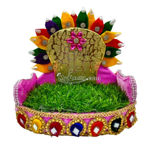 Decorative Bal Gopal ji Singhasan with Wood and Green Grass