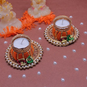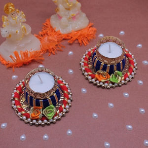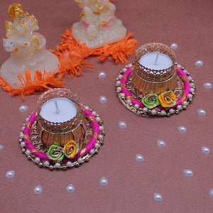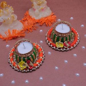 Decorated Drum Style T-Light Candle Holder ( Set of 2 )