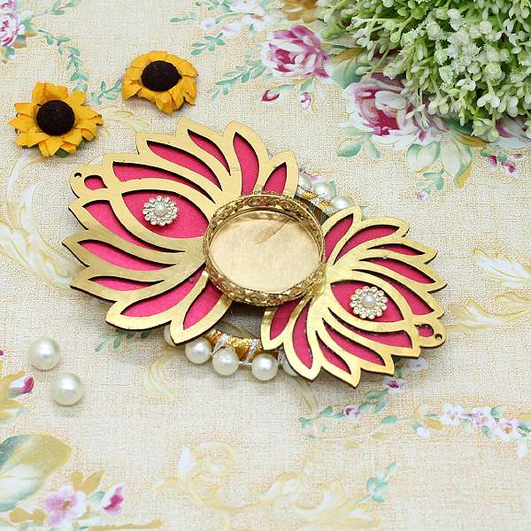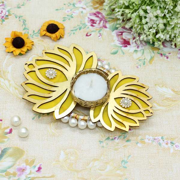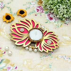 Lotus and beads Decorated T-Light candle holder for Festivals
