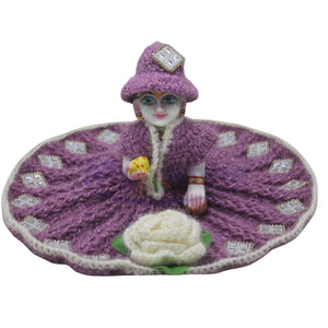 Mirror work patch decorated Lavender color woollen dress for Laddu Gopal ji