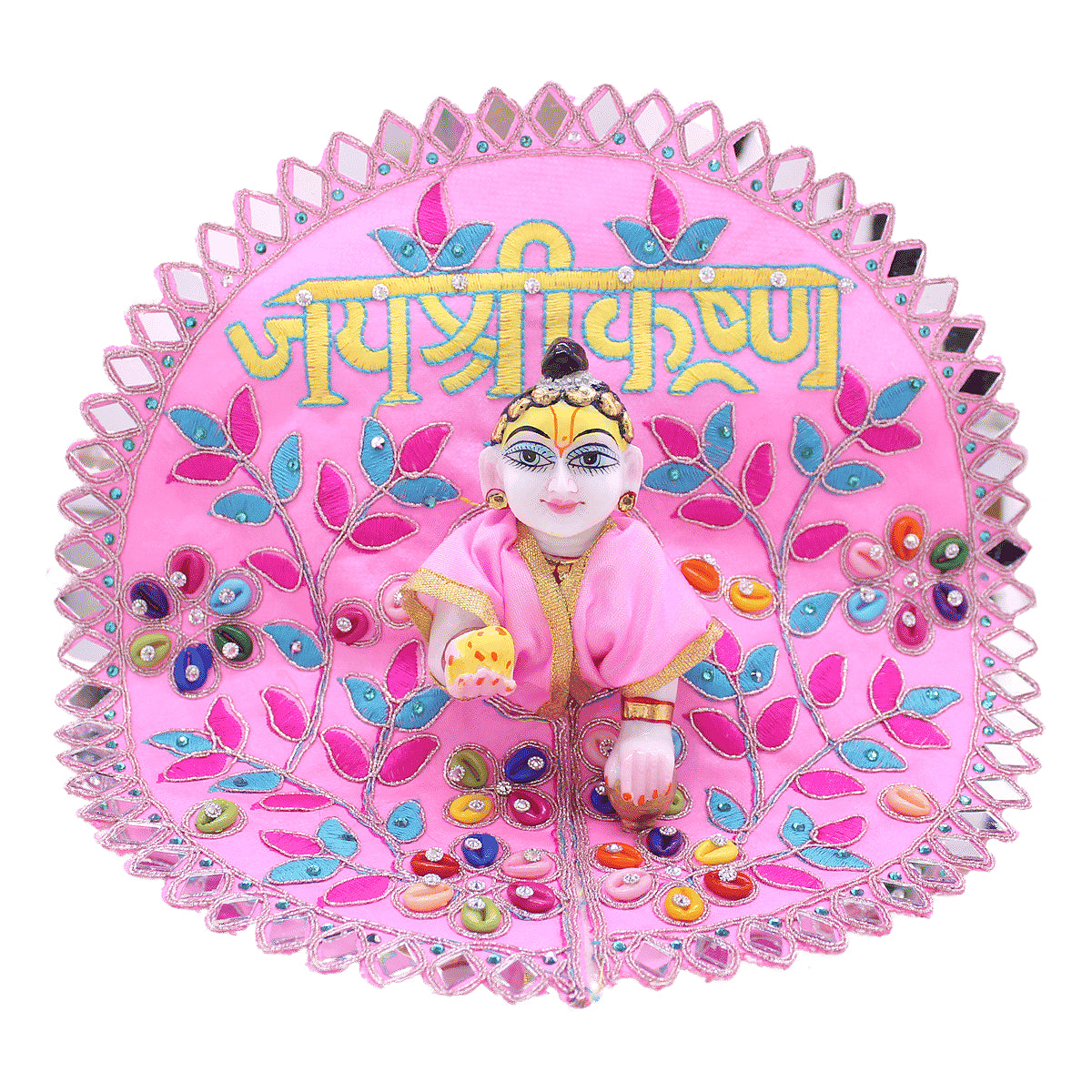 Jai Shree Krishna Printed designer pink dress for Kanha Ji