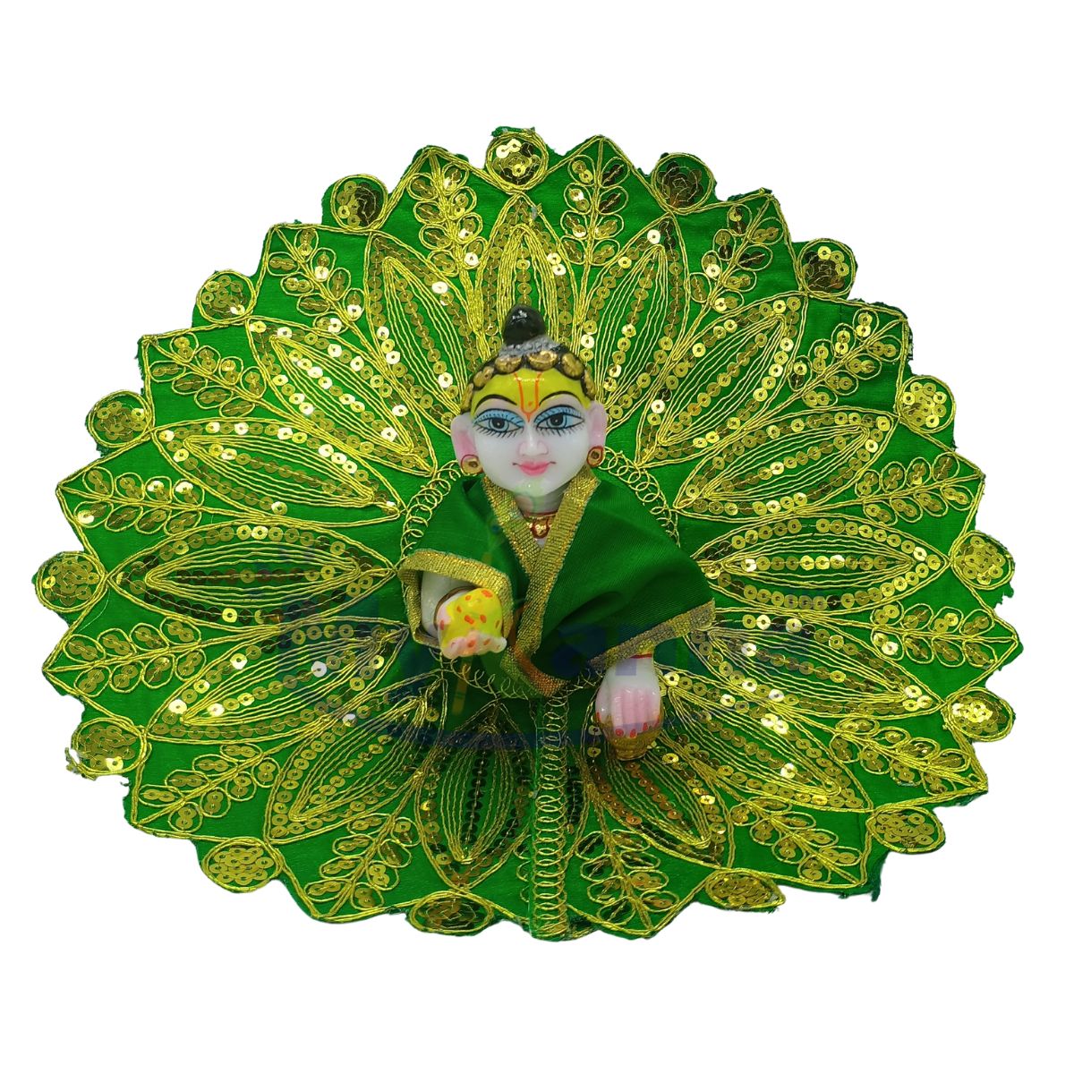 Leaf design embroidery designer green dress for Laddu Gopal ji