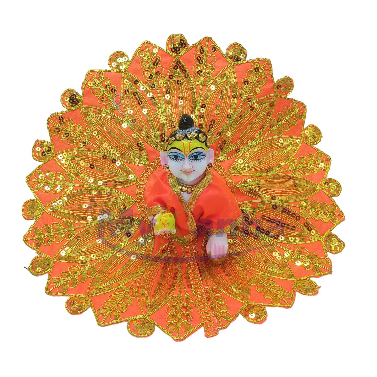 Leaf design embroidery designer orange dress for Laddu Gopal ji