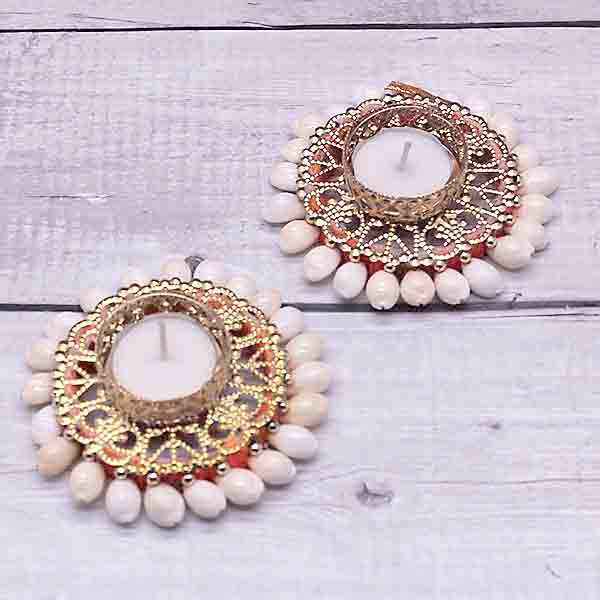 Kaudi / Shell Decorated T-Light Candle Holder (Set of 2)