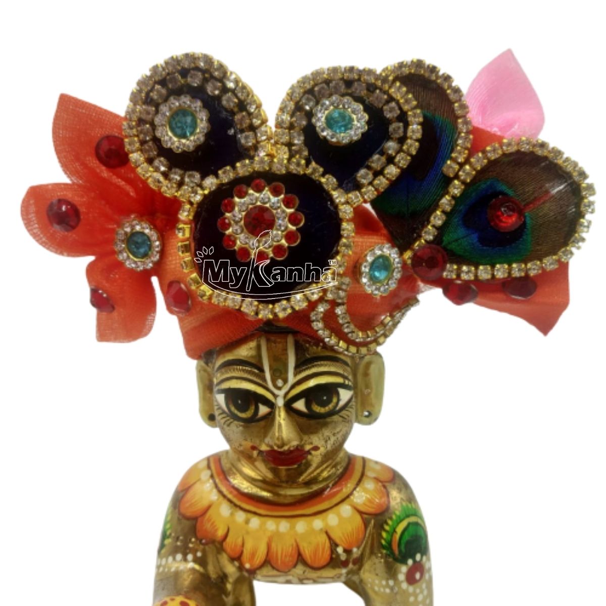 Beautiful Stone Decorated Orange Mukut For Kanha Ji