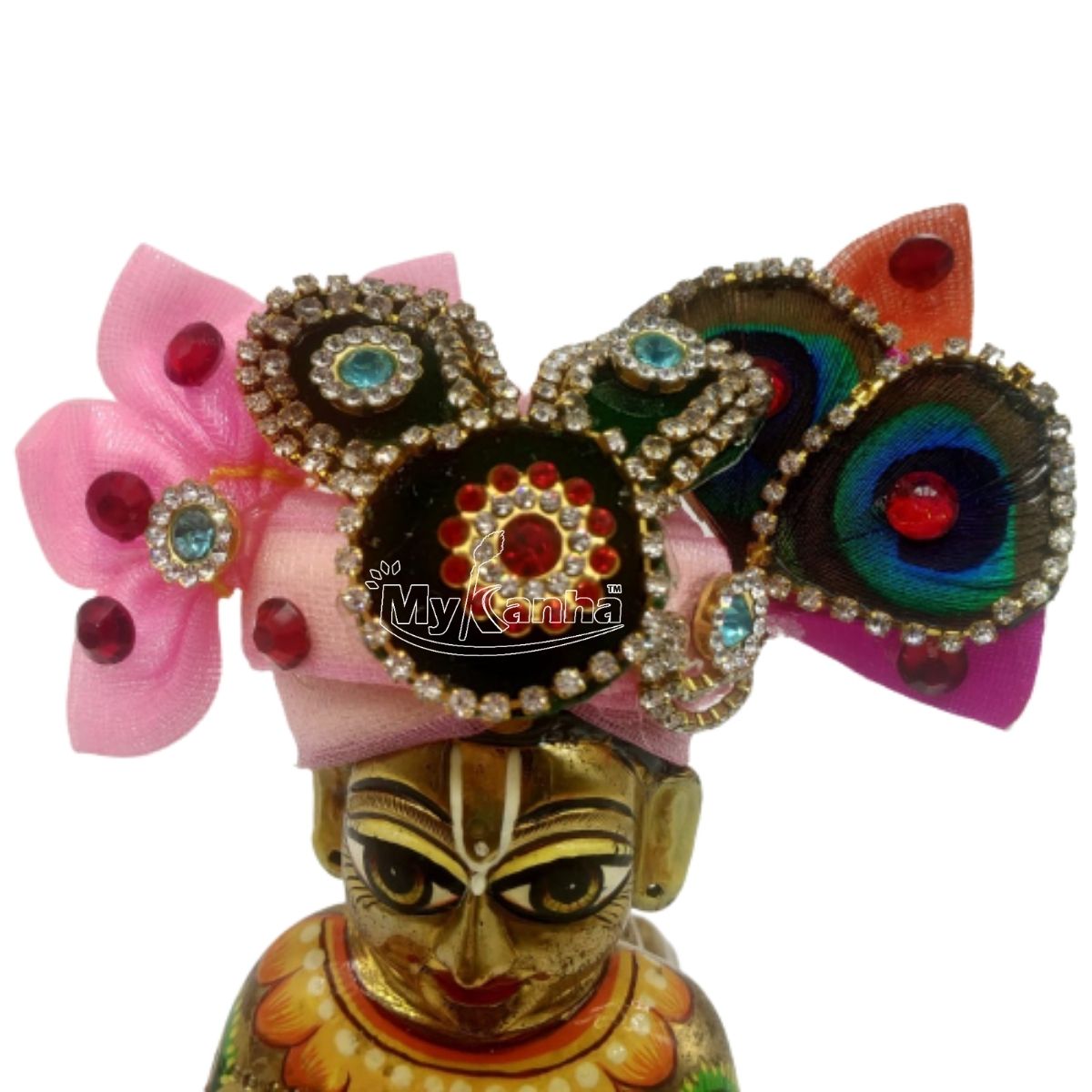 Beautiful Stone Decorated Pink Mukut For Kanha Ji