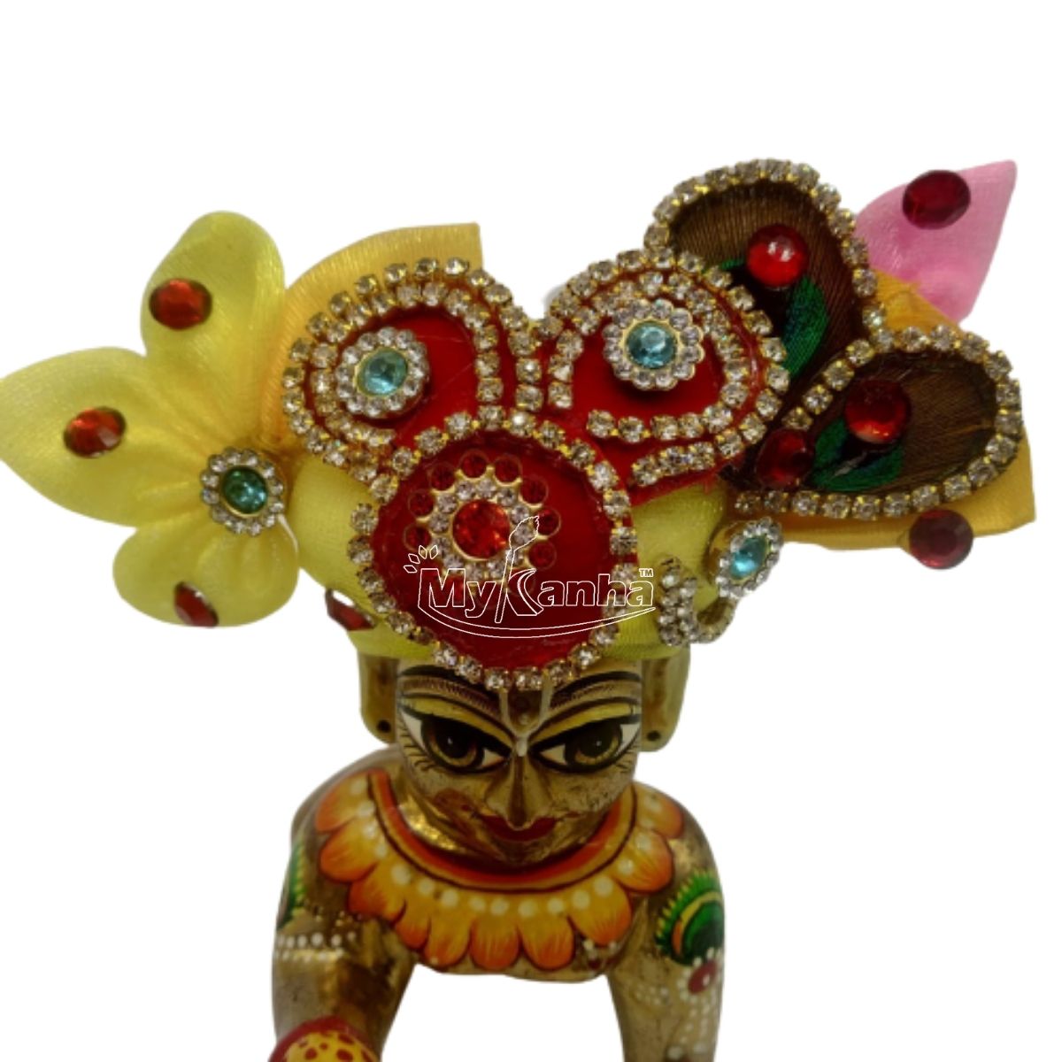 Beautiful Stone Decorated Yellow Mukut For Kanha Ji
