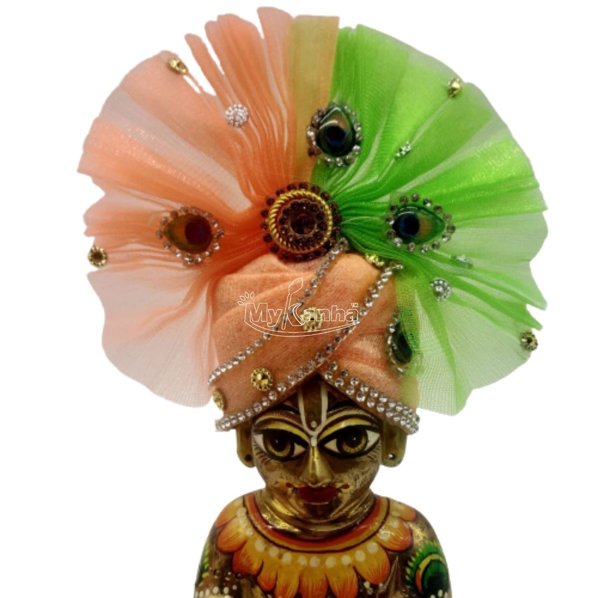 Beautiful Zari And Stone Work Orange Mukut For Kanha Ji