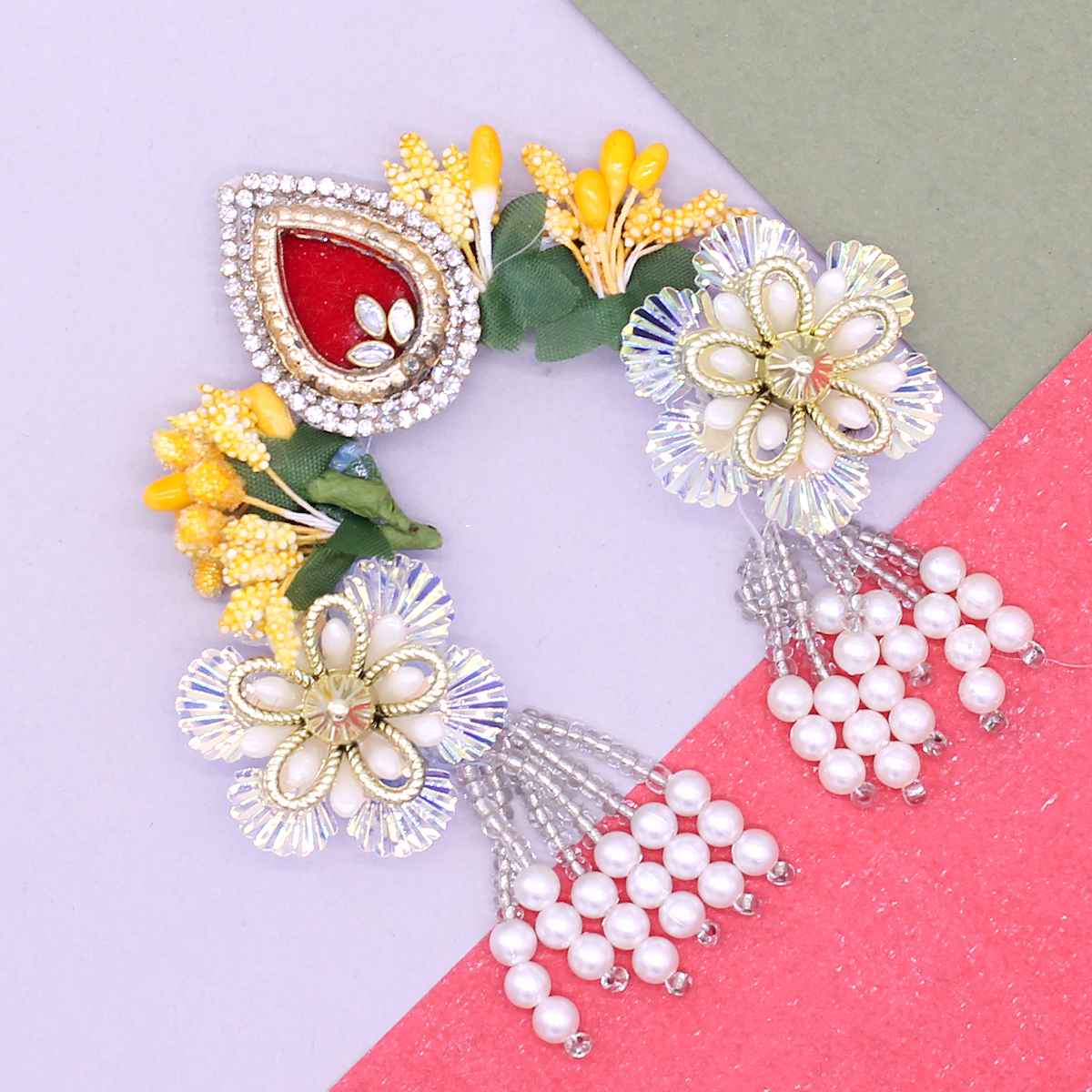 Flower Design and kerry Decorated Chandrika for Radha Rani