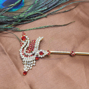 Enhance the divine beauty of your Krishna or Laddu Gopal idol with this Peacock Design Decorative Bansuri, embellished with sparkling stones and a graceful pearl drop. Inspired by Lord Krishna’s iconic flute and peacock feather symbolism, this stunning flute adds elegance, color, and charm to your mandir, pooja setup, or Janmashtami display.