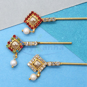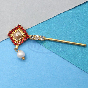 Rectangular shape moti and stone decorated flute for idols (small)
