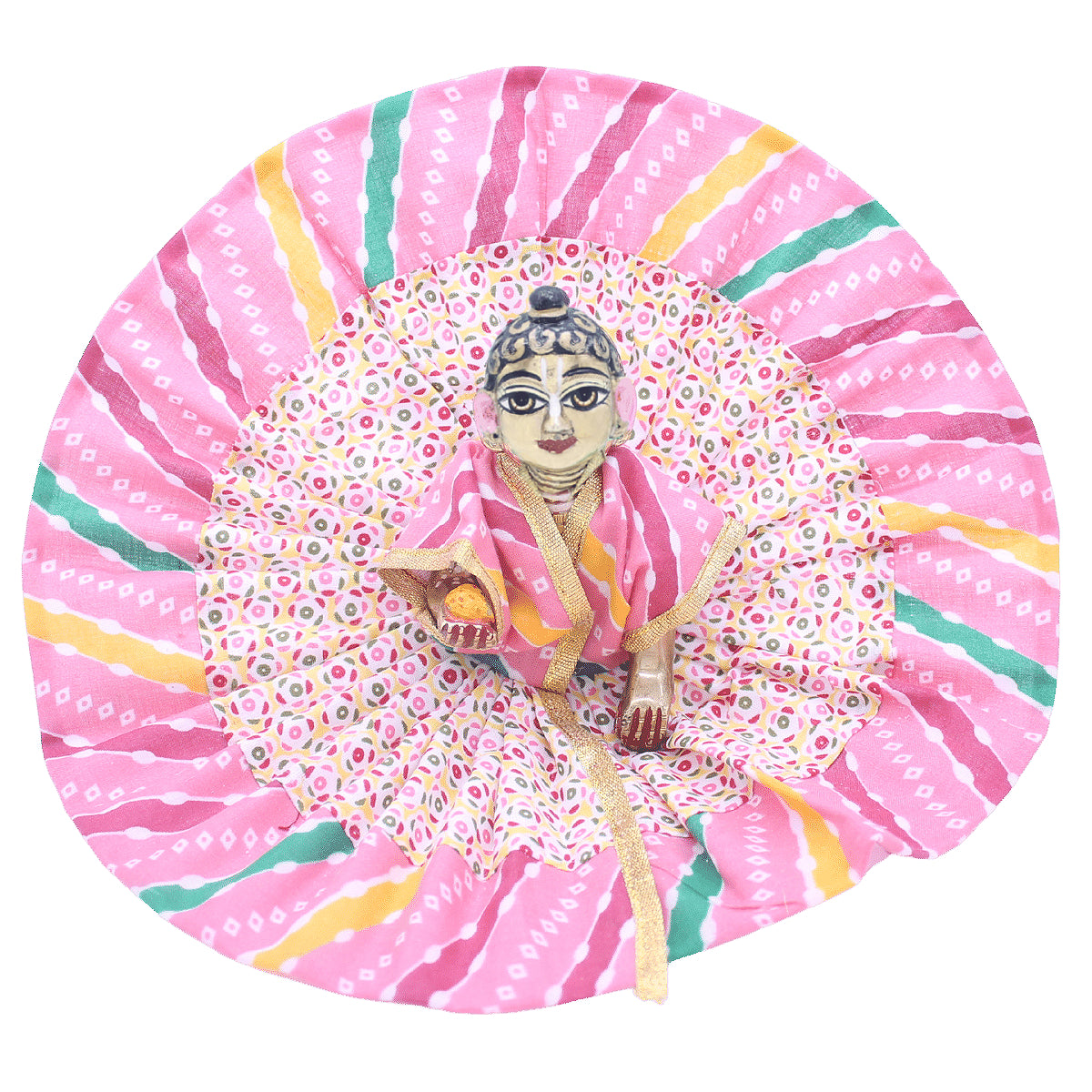Dual pattern summer designer baby pink dress for Laddu Gopal Ji
