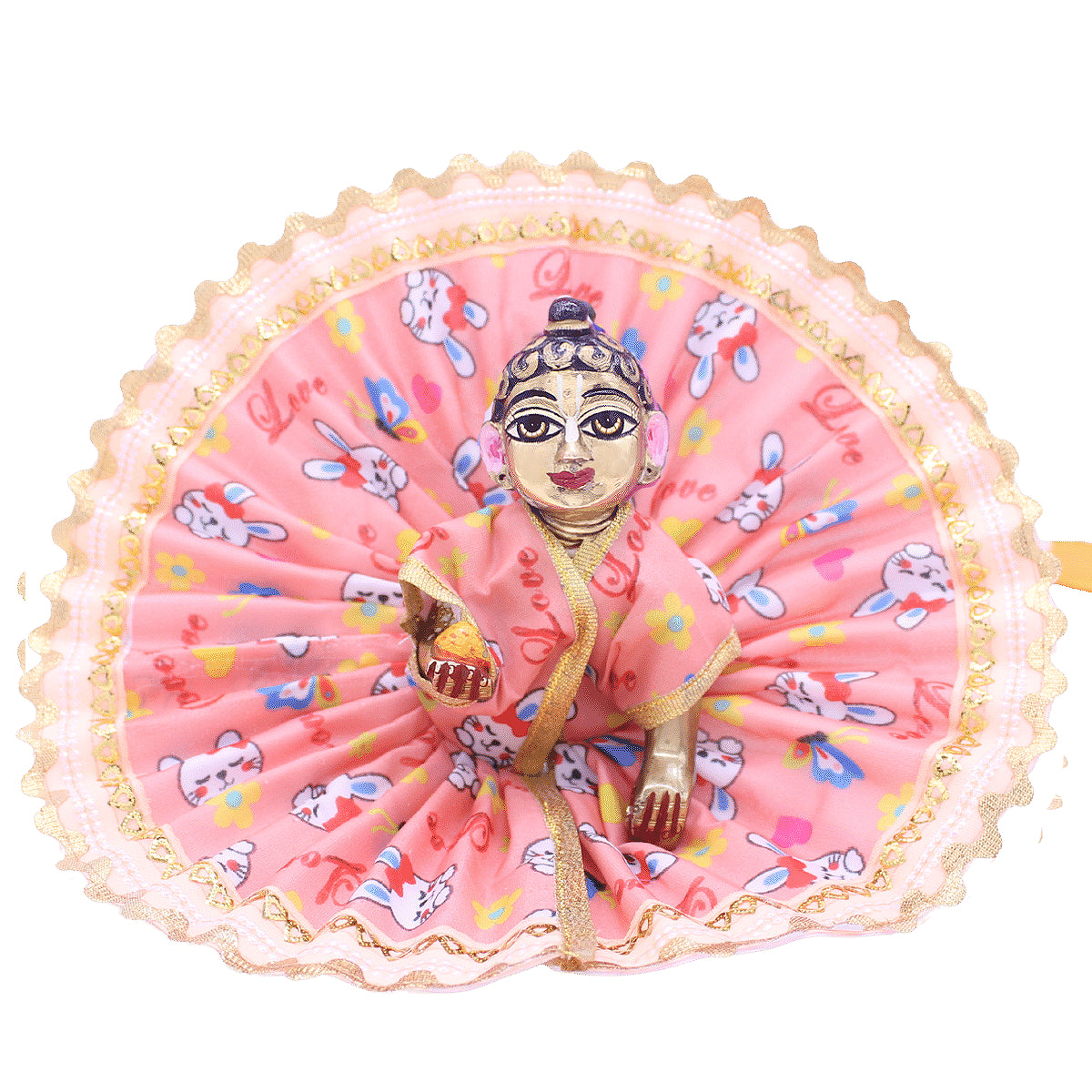 This 4-inch tall idol of Laddugopal is a beautiful addition to your home and your day-to-day routine. Often welcomed by couples who long for their own children someday, provide him with his set of sweets - they say He also looks forward to His daily meals.Dress for 4 number Kanha ji