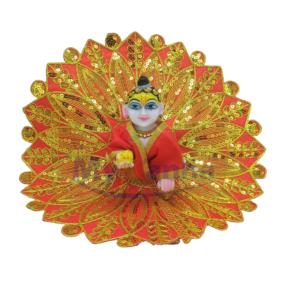 Leaf design embroidery designer red dress for Laddu Gopal ji