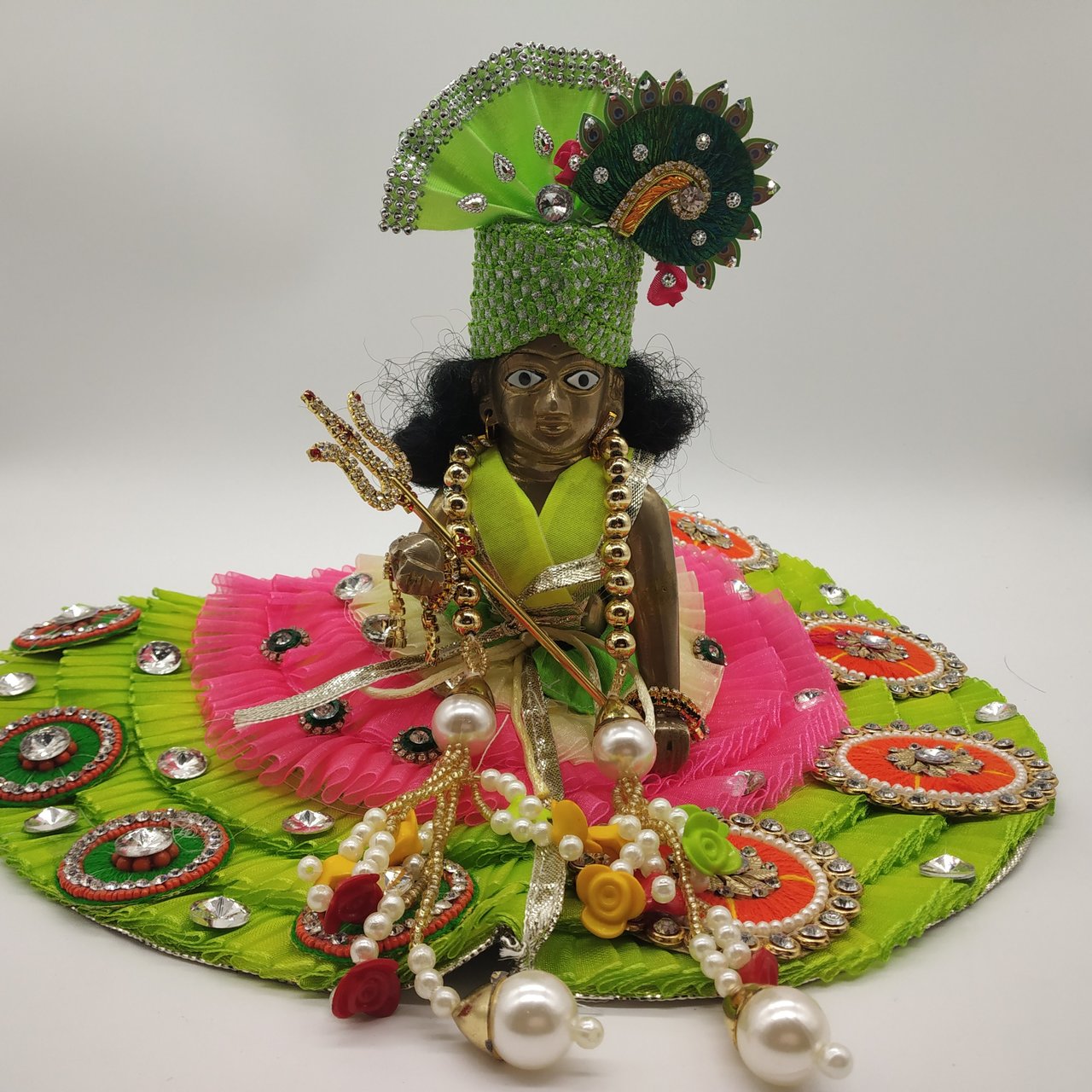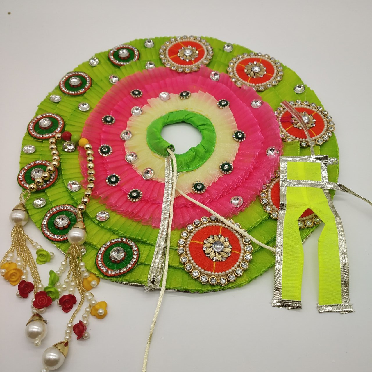 Premium Designer Green & Pink Dress With Heavy Patch & stone with Patka & Choli for Kanha ji / Laddu Gopal / thakur ji at best price. Get this trending premium dress at your door step.
