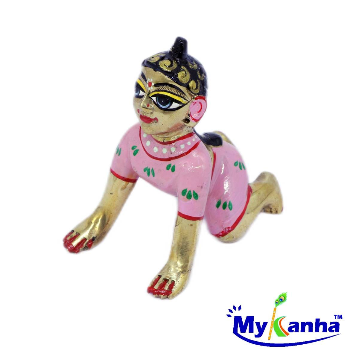 Fine Brass Made Pink Hand Painted Bal Radha Rani Idol