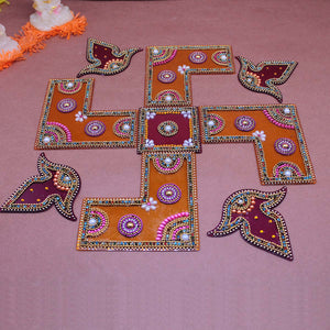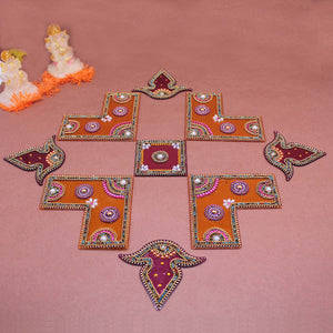 Home Multi Design Rangoli 9 Pieces Set ( Orange & Red )