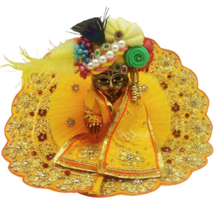 Laddu Gopal Heavy Decorated Yellow Dress with Designer Pagdi